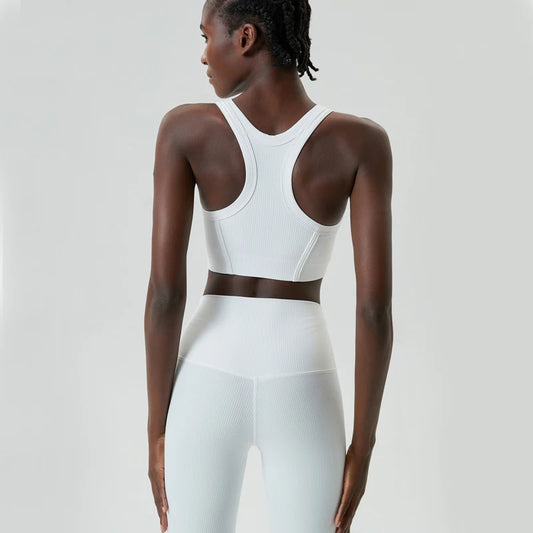 High Impact Gym Suit Women Ribbed Fabric Two Pieces Fitness Yoga Set Slim Fit Stretchy Running Sportswear Workout Clothes